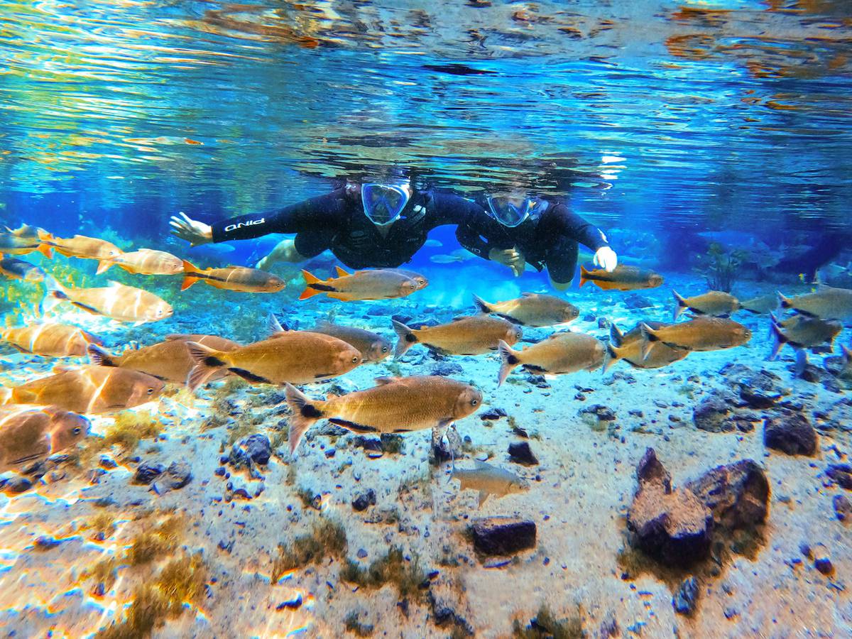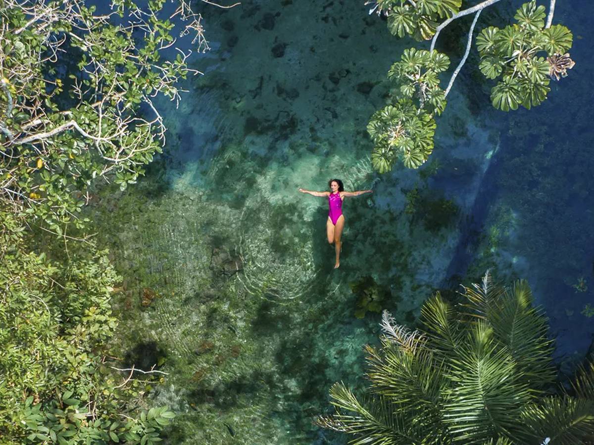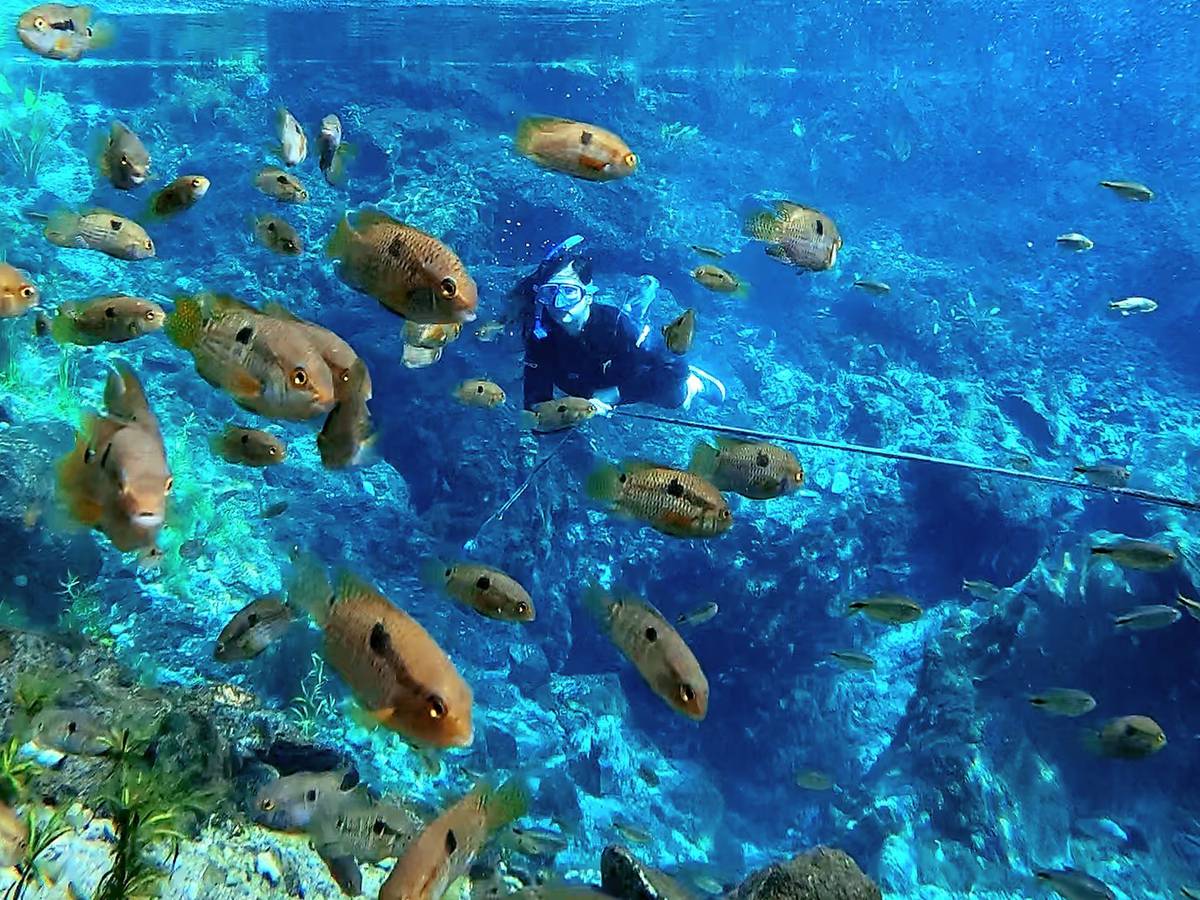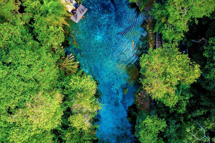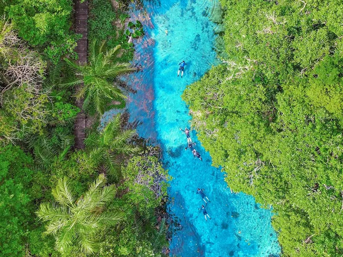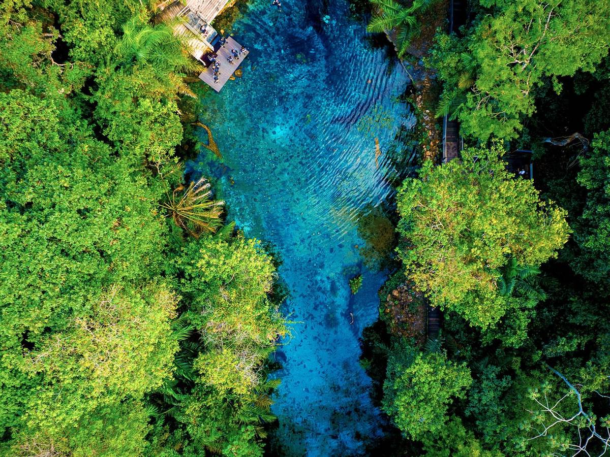 No fundo da caverna, os visitantes encontram um lago subterrâneo de águas extremamente transparentes, com impressionantes formações calcárias submersas. O passeio inclui um tranquilo trajeto de bote e a inesquecível experiência de flutuação, que permite observar de perto a beleza subaquática do local em um ambiente de silêncio e contemplação.