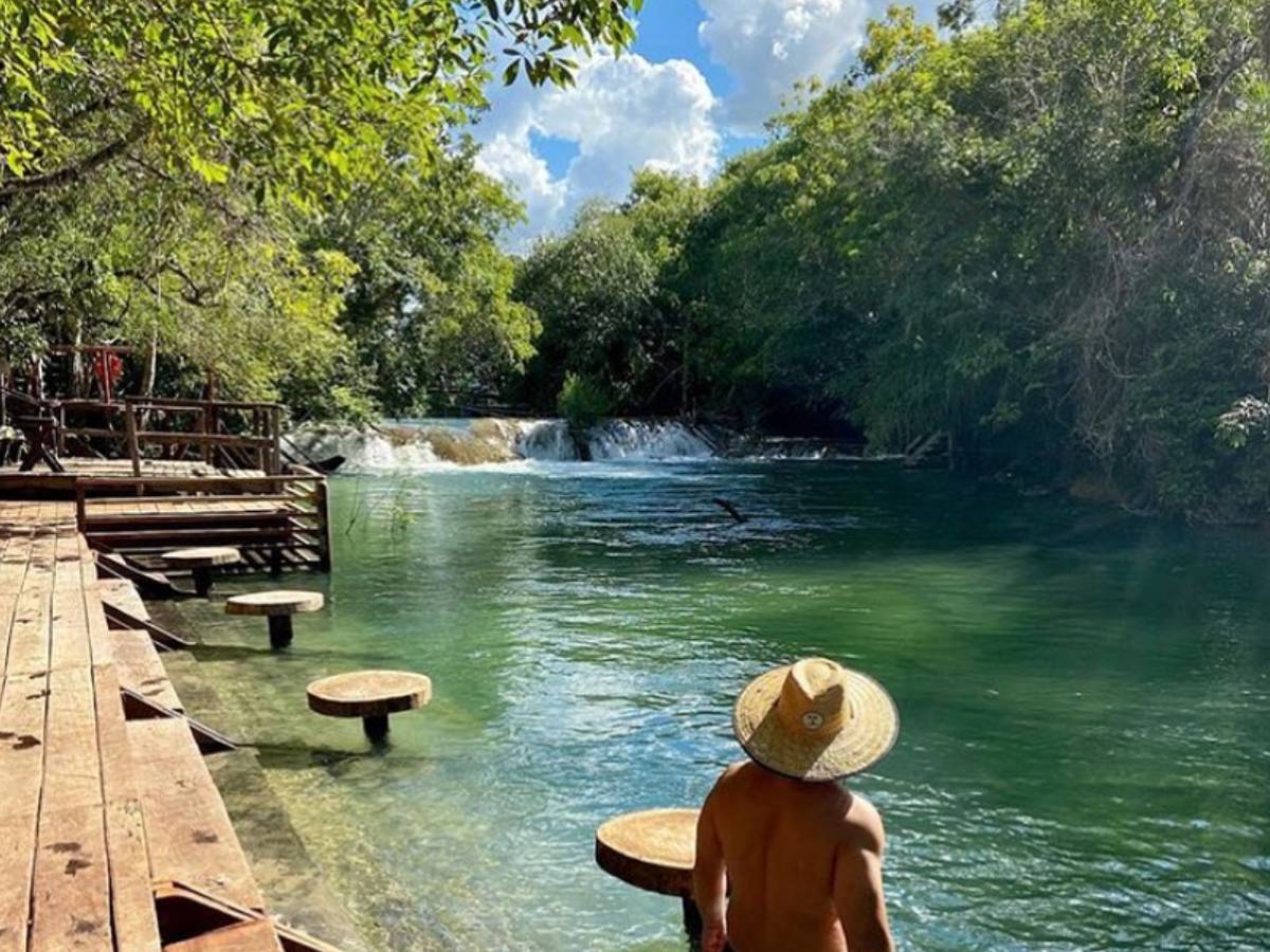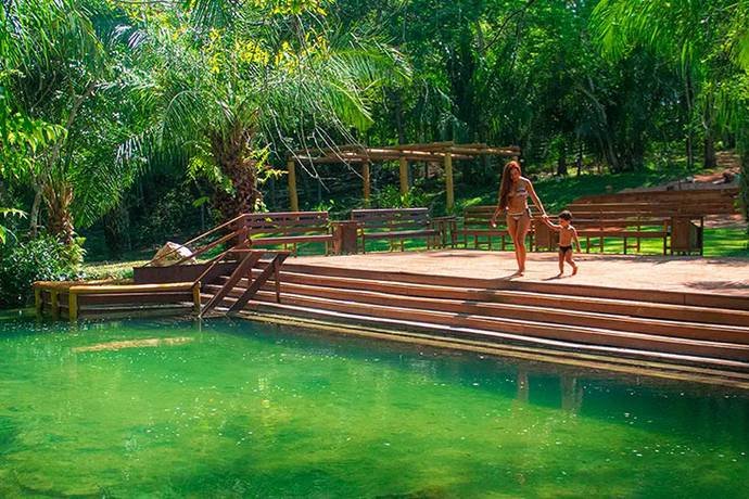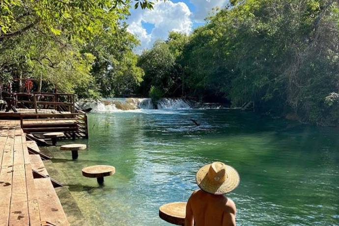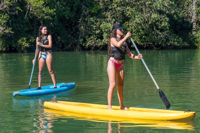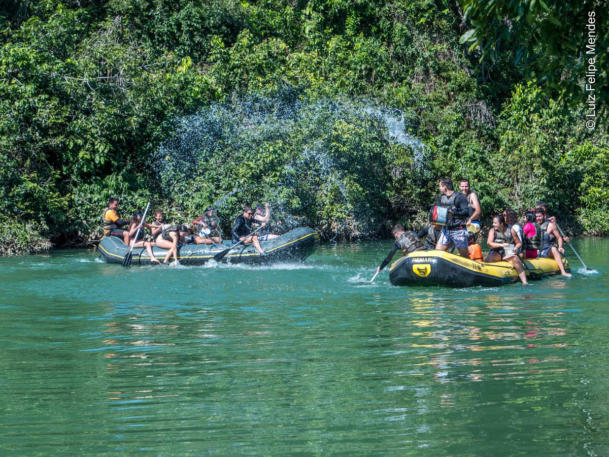 Em algumas épocas do ano, trilhas ecológicas pela mata ciliar e paradas para banho de rio podem fazer parte da experiência.