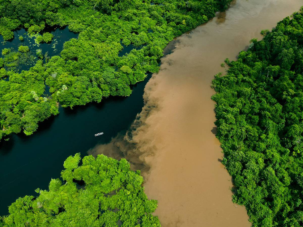 Encontro das águas cristalinas do Rio Salobra com as águas turvas do Rio Miranda, criando um dos cenários mais bonitos do Pantanal.