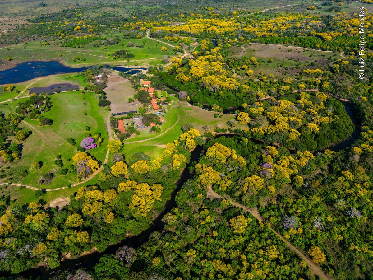 Caminho ao som do berrante, aves e riachos, com oportunidades de parar para contemplação, histórias e descanso.