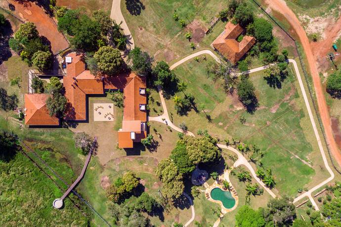 Infraestrutura de apoio da fazenda (banheiros, redário, estacionamento).