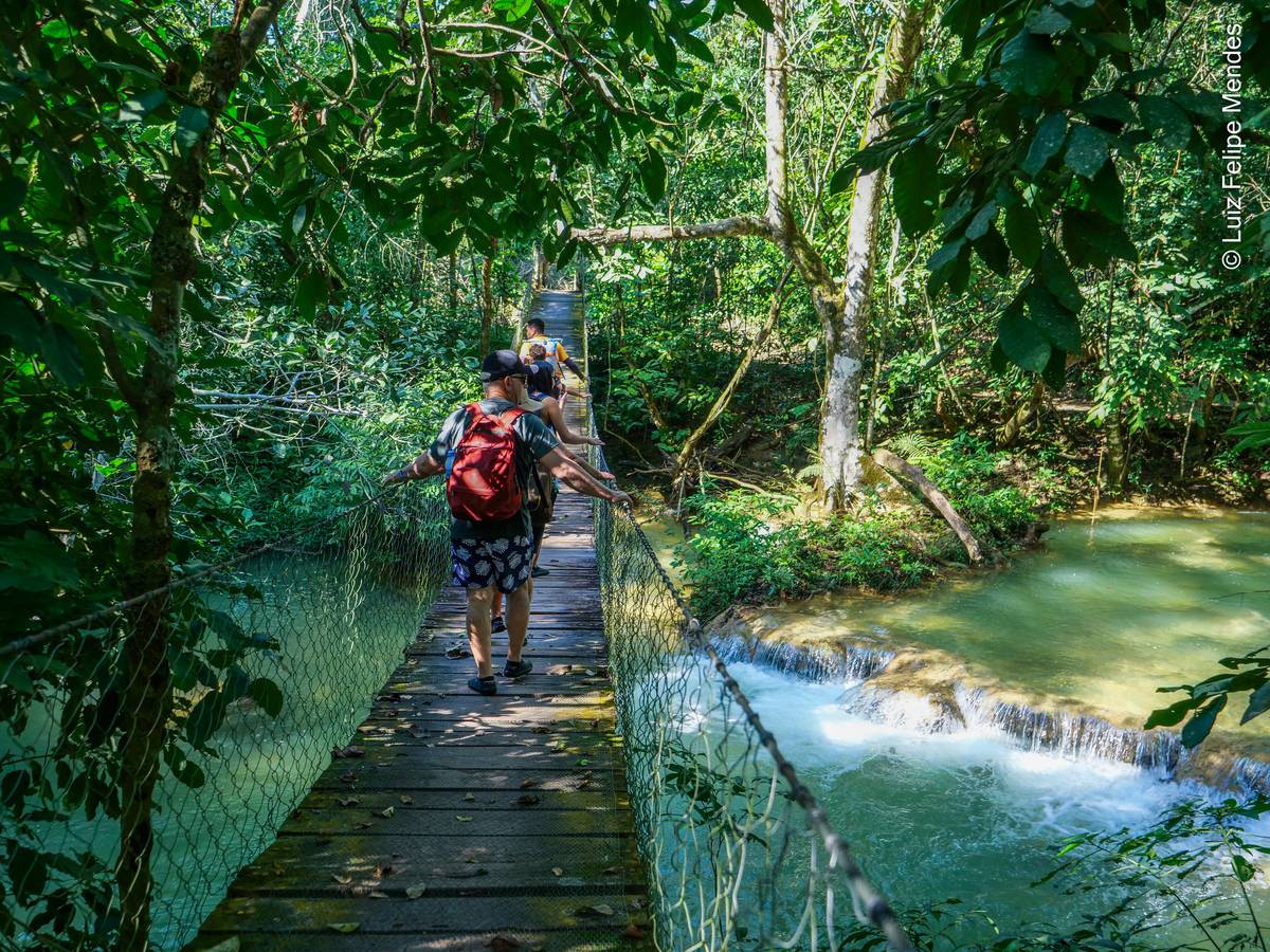 O passeio nas Cachoeiras Serra da Bodoquena oferece uma trilha de cerca de 2,5 km pela mata até diferentes cachoeiras e piscinas naturais, com acesso a locais de banho, tirolesa, bote de rio e muita natureza ao longo do percurso.