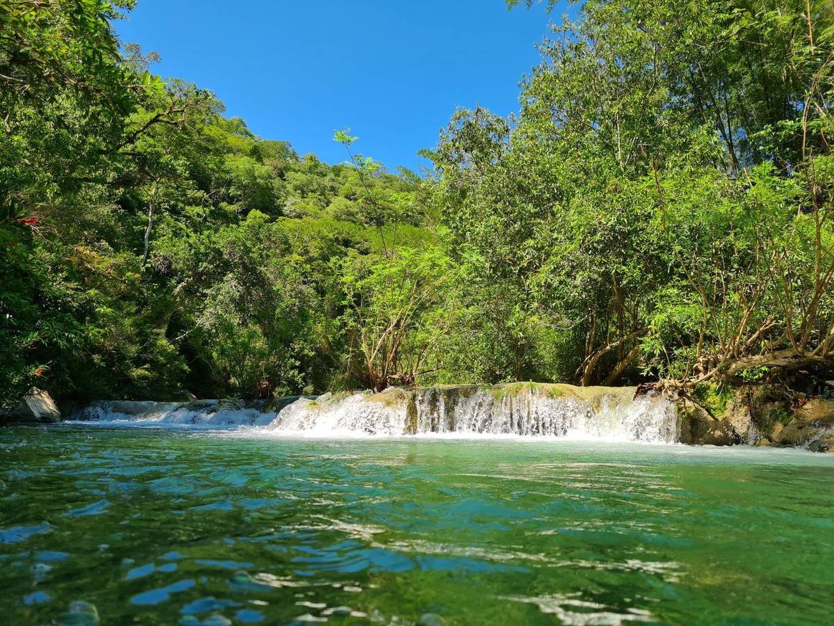 Trilha ecológica margeando o Rio Betione entre cachoeiras.