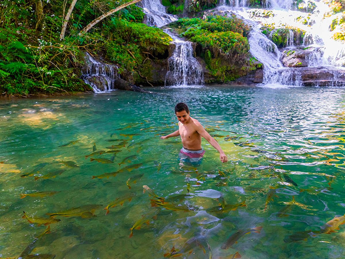 Cachoeiras, trilhas e um dia inteiro de atividades em contato com a natureza.